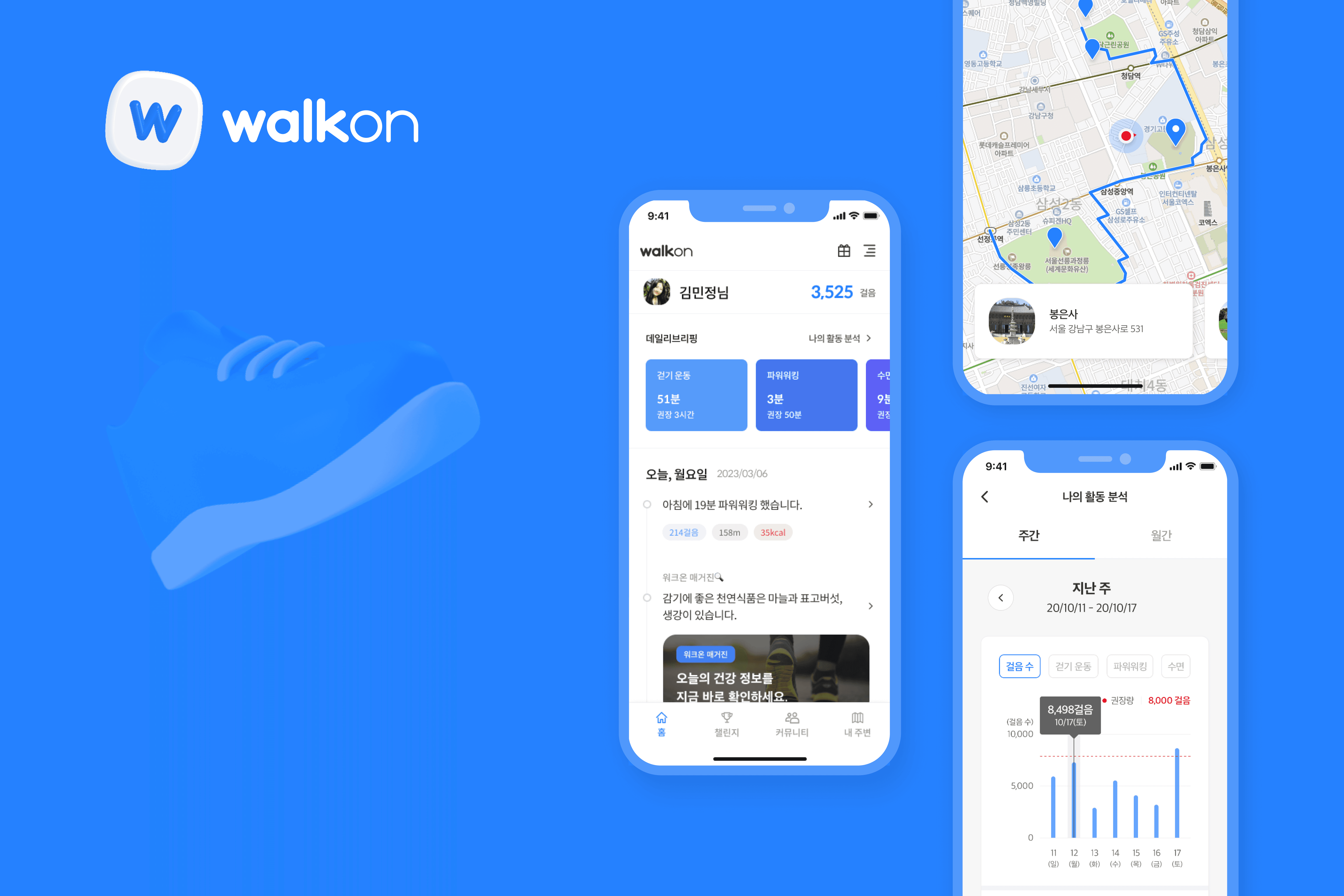WalkOn is a digital healthcare app for creating healthy habits with friends, colleagues, and neighbors through fun events and various contents.